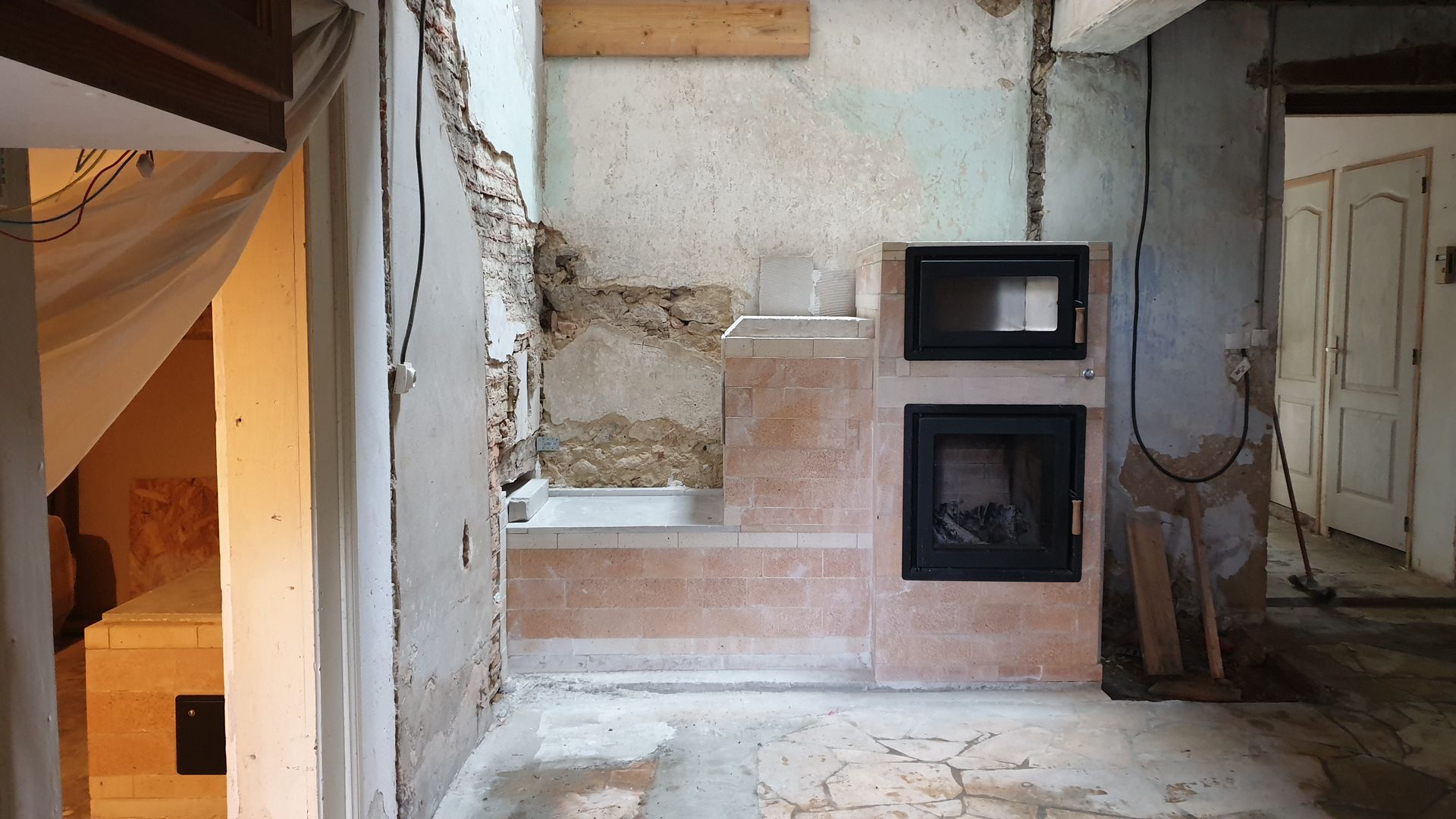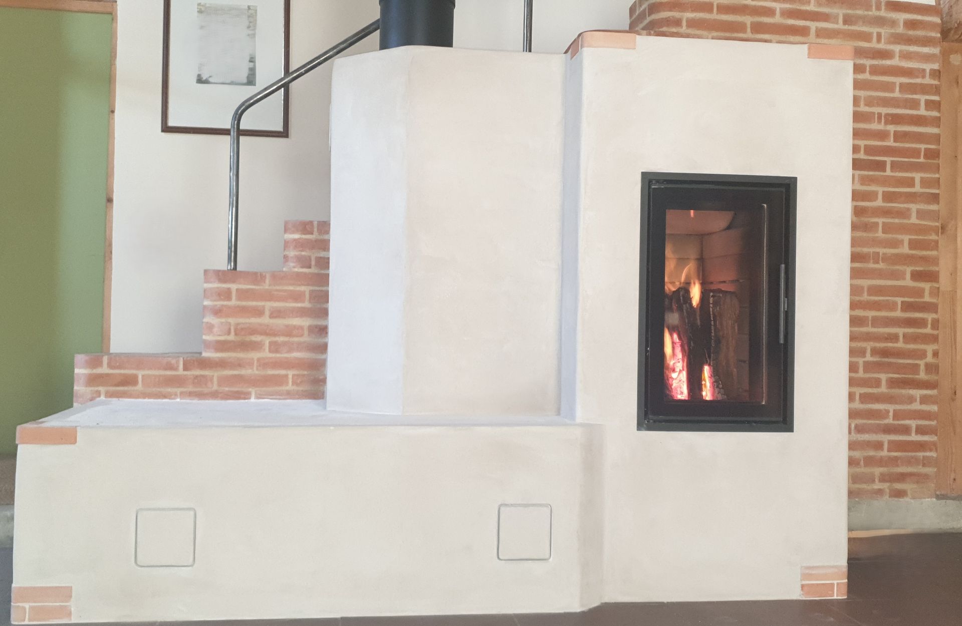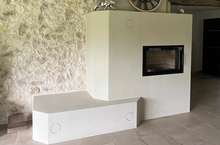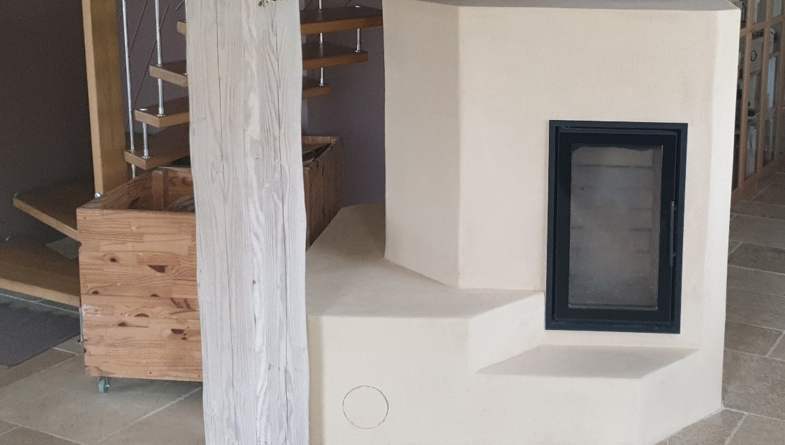 A masonry device weighing several tons, an intense outbreak of several kilos of wood - a slow release of radiant heat.